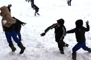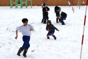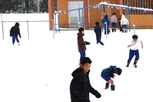 今シーズン、初めてのまとまった積雪がありました。グラウンドには10㎝ぐらいの雪が積もり、早速、雪遊びを楽しむ姿が見られました。