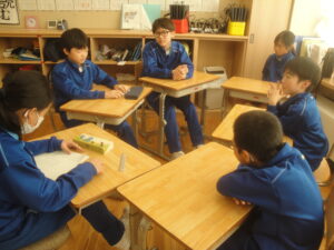 今月から高学年の総合的な学習の時間は、5年と6年それぞれで行っています。5年生の活動名は「もうすぐ6年生」です。その中で、5年生は2つのプロジェクトを計画しています。一つは「6年生に感謝を伝え、安心して中学校に進める集会を企画しよう」、もう一つは「来年度のリーダーとして、6年生になる準備を進めよう」です。各班に分かれて目当てや具体的な活動内容を話し合い、考えていました。