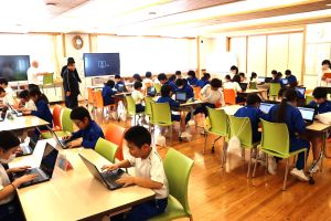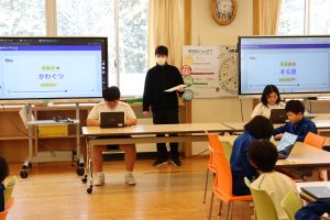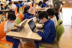 この大会を目指して、休み時間にグループで集まって練習してきました。3回戦でポイントを競い合いました。最後の回には、6年生の対決の画面をみんなで観戦し、そのスピードを実感しました。