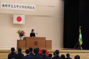 多数の来賓、地域のみな様の出席のもと閉校式が行われ、上平小学校12年の歴史に幕を下ろしました。4月からは五箇山学舎として再スタートします。
