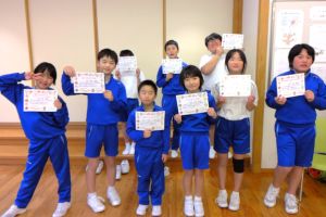 「キラキラお話作文コンテスト」の表彰式を行いました。第1回の今回は、9名の応募がありました。同じ絵を見て文を書いてもそれぞれに違いがあり、工夫点もそれぞれでした。第2回のお題はもう提示してありますので、さらにたくさんの応募を期待しています。