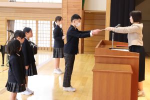 上平小学校としての修了式を行いました。令和7年度の1年を振り返って、自分の成長を確かめ、新しい学校「五箇山学舎」でも頑張ろうと意欲を高めました。